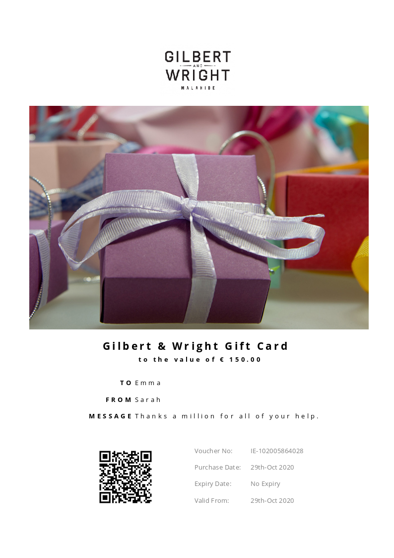 Gilbert and Wright Malahide allows you to purchase instantly printable gift vouchers, special offers and tickets using the Voucher Connect platform.